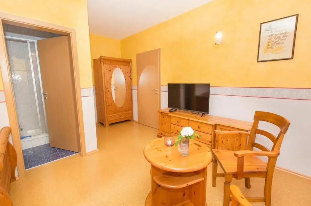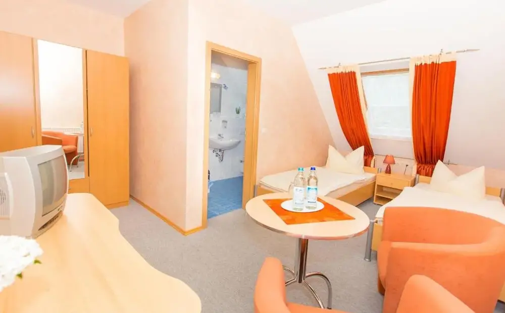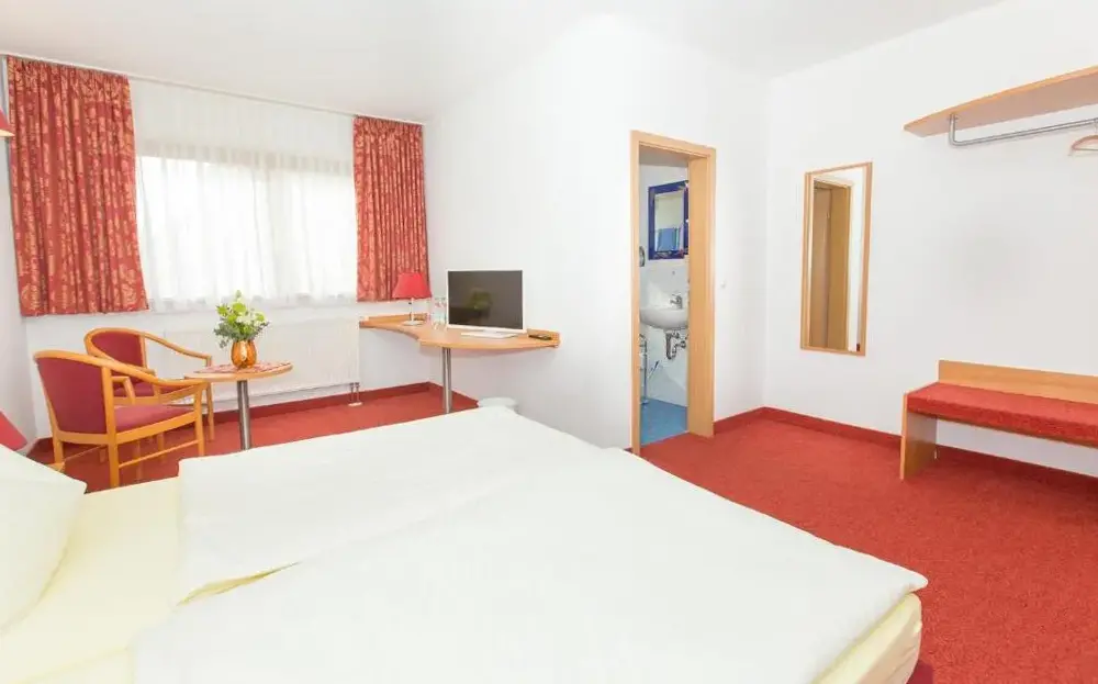 Steigerwaldpension se encuentra en Wiesenweg 15, 97353 Wiesentheid, Alemania. Ofrece alojamiento cómodo con habitaciones familiares equipadas con baño privado, insonorización y comodidades modernas. Cada habitación cuenta con escritorio de trabajo, televisor y armario, garantizando una estancia placentera. Los espacios exteriores permiten relajarse en la terraza o disfrutar de la zona de asientos al aire libre. El establecimiento dispone de parking gratuito en el mismo sitio, parking para bicicletas y área exterior para sentar. Adicionalmente, hay disponibilidad de secador de pelo, ducha e instalaciones silenciosas. Se ubica a 44 millas del Aeropuerto de Nuremberg, cerca de la Estación Central de Würzburg (22 millas), la Catedral de Würzburg (22 millas) y otras atracciones turísticas locales. Su ubicación tranquila y atención del personal son destacados por los visitantes.